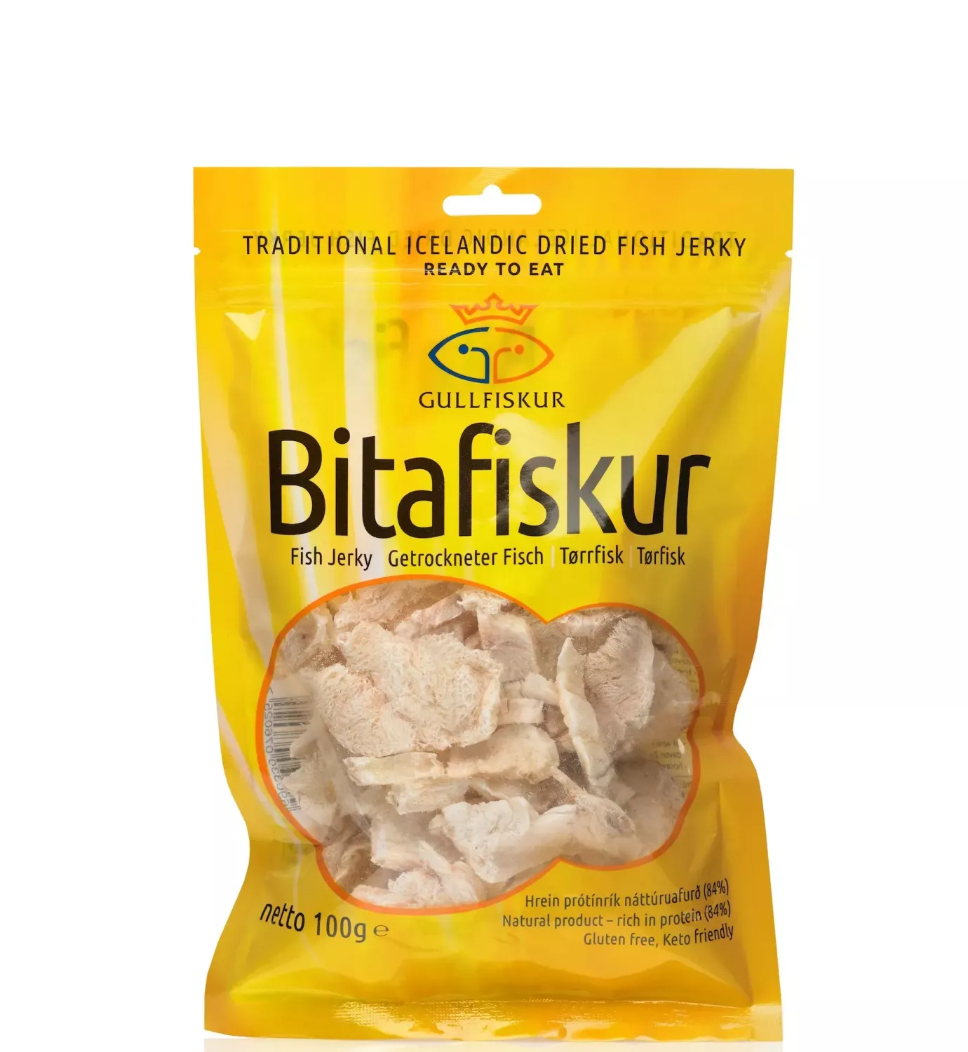 Ingredienser: Torskefilet, salt, protein. Fisk kan forårsage allergier hos følsomme personer!