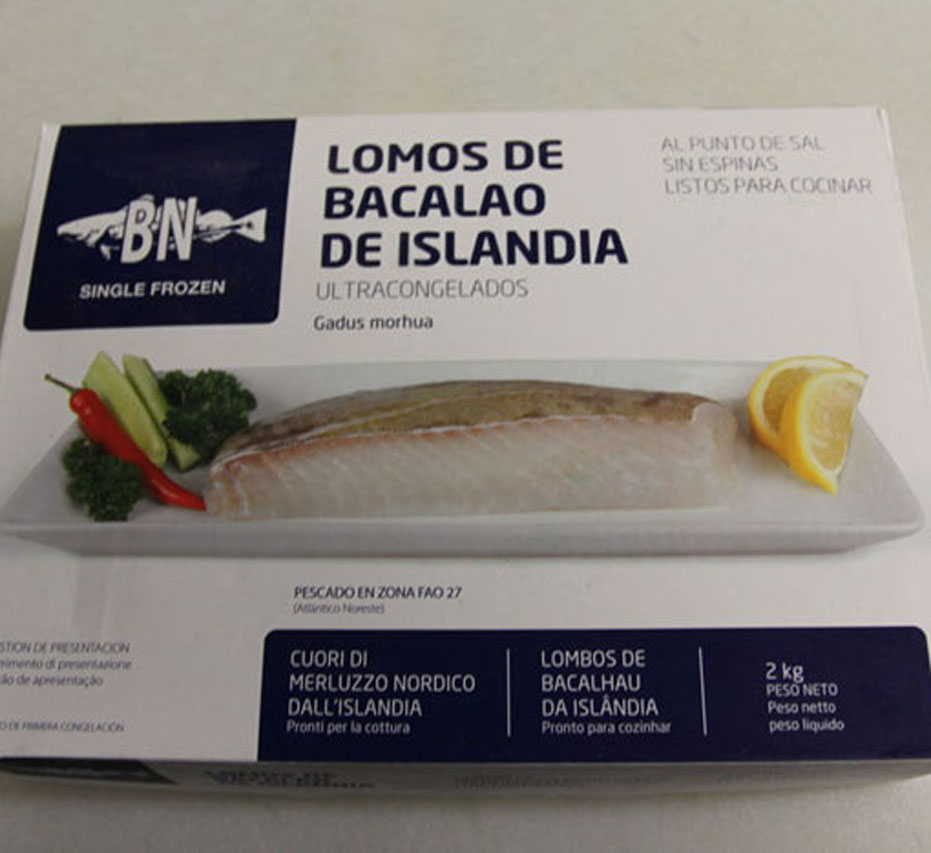 Letsaltet torskefilet er frossen og udbenet! Fisken er fanget ud for Island med line (Nordøstatlanten).